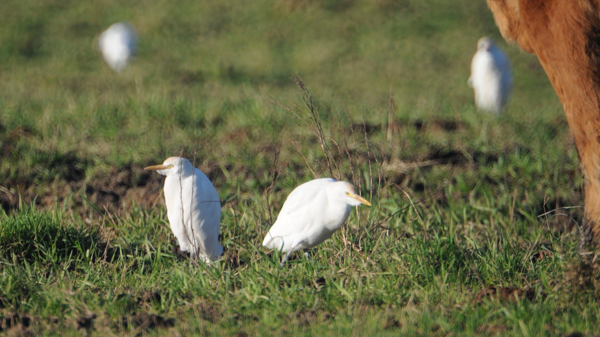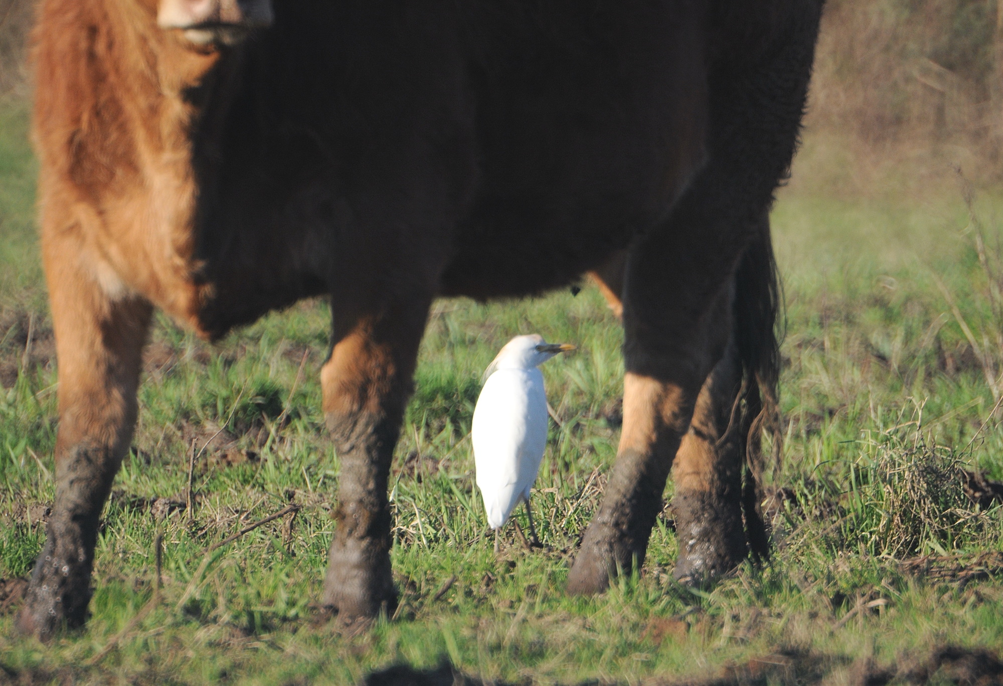 Et pour que les ornithos ne se sentent pas trop frustrés, voici quelques images du Héron garde-bœufs, surpris dans une prairie jouxtant l’allée Robert Cheval. C’est une espèce arrivée récemment à Sainte-Luce, voici une vingtaine d’années quand même !