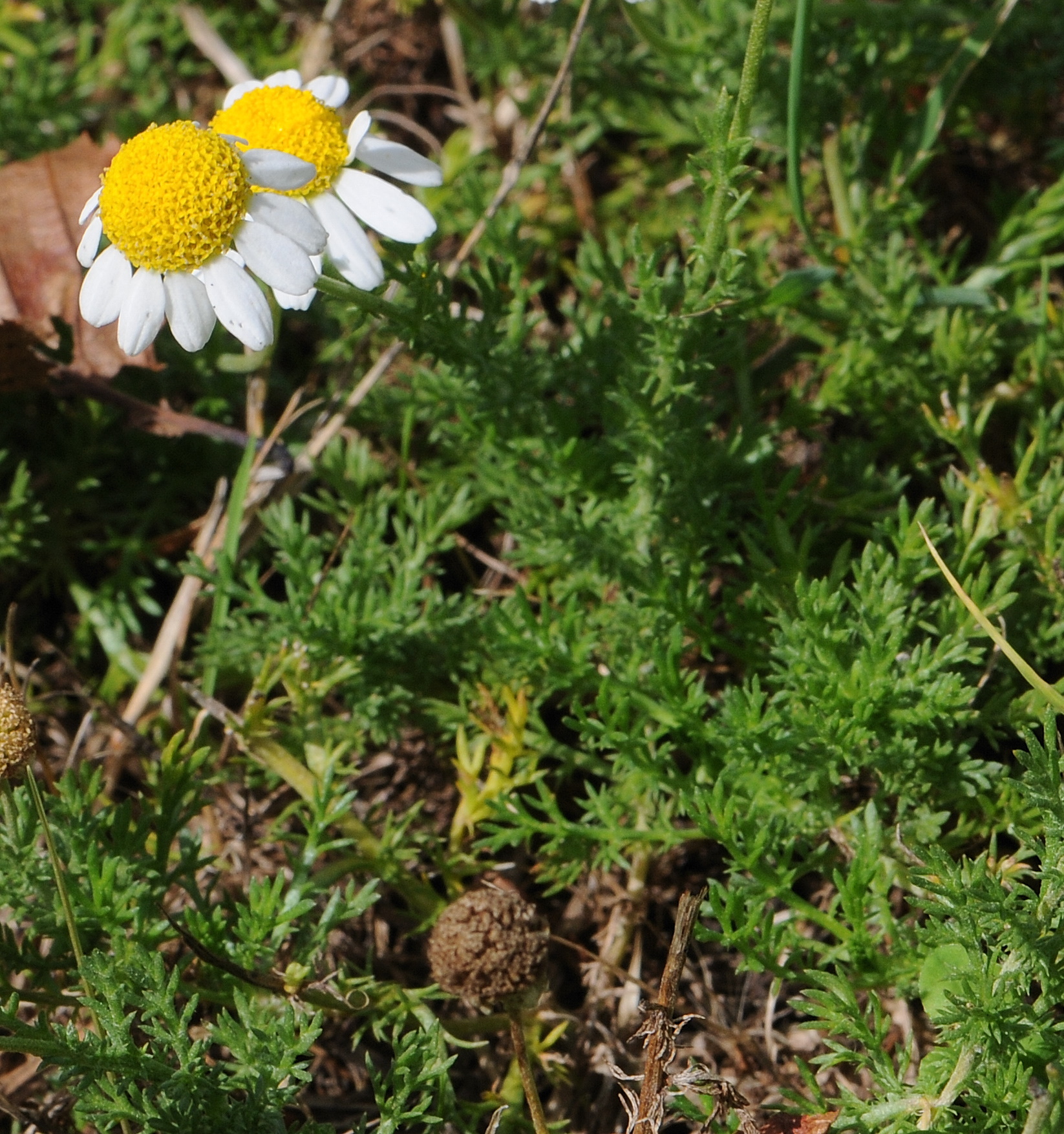 Même allure de petite marguerite blanche et jaune, même biotope certes, mais le feuillage est très différent : les feuilles sont divisées en segments très fins et si on les froisse entre les doigts, on perçoit une odeur agréable, indice d’une utilisation alimentaire et médicinale…