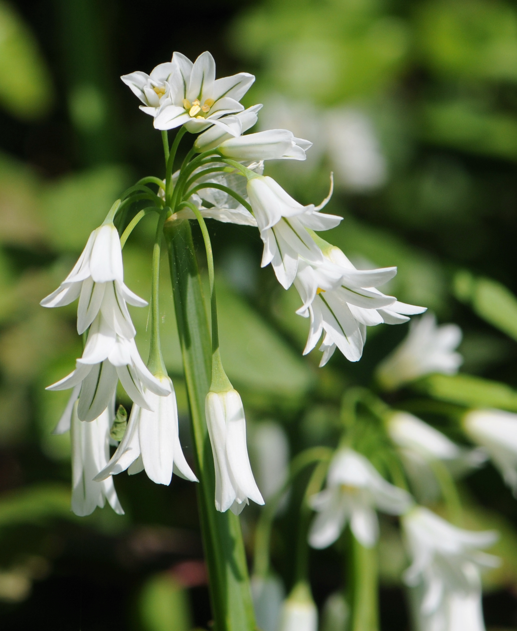 L’Ail triquètre fréquente les fossés, les prairies humides. Son nom d’espèce souligne le fait que la hampe qui porte les fleurs a une section triangulaire. Mais le charme de cette plante réside surtout dans l’élégance de ses fleurs dont les pétales d’un beau blanc pur sont délicatement ornés d’une nervure médiane verte. La hampe triangulaire porte à son extrémité un groupe de fleurs. Les « queues » de celles-ci, appelées pédoncules, semblent partir d’un même point, ce qui caractérise une inflorescence en ombelle. | ![]() |