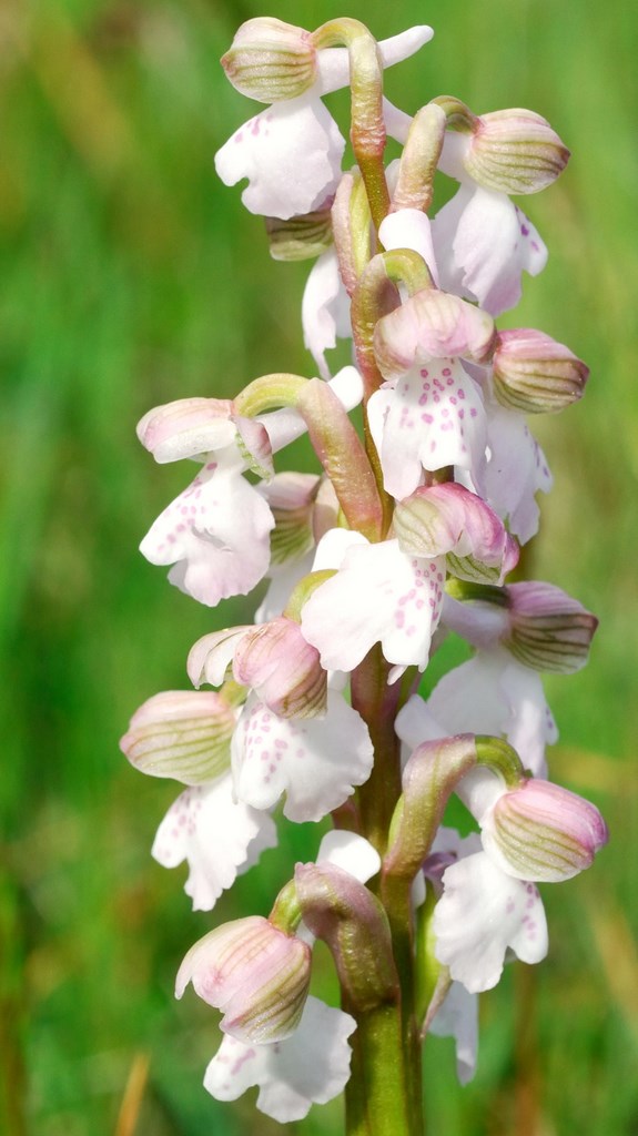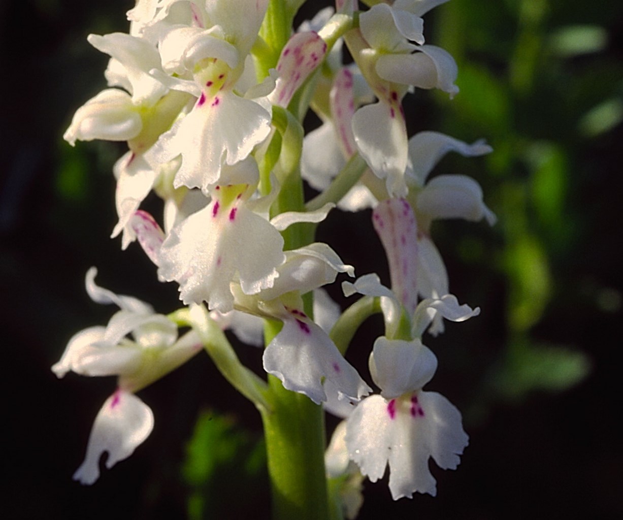 Ne pas s’imaginer que cette orchidée affiche toujours les mêmes couleurs ! Il s’agit bien ci-dessous de l’Orchis bouffon dont la palette va du rose violacé soutenu au blanc, en passant par des nuances saumon…
