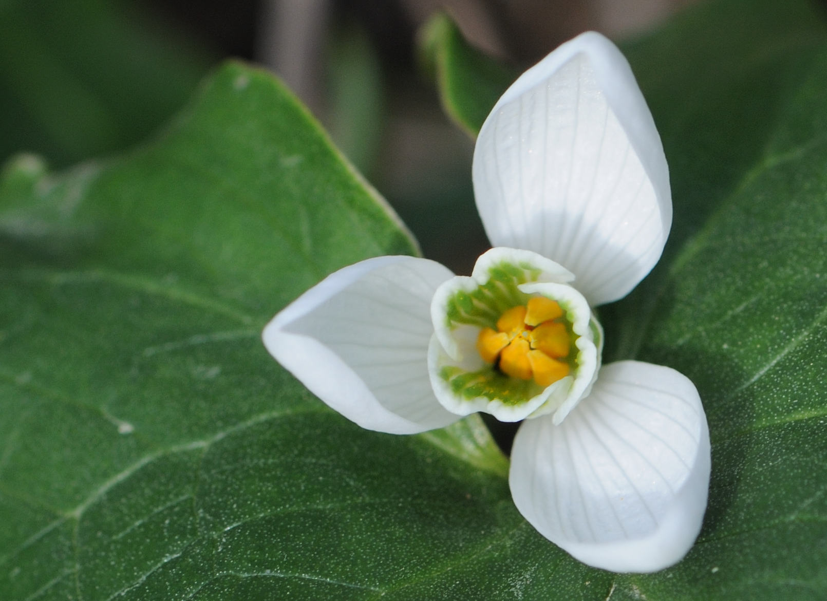 Sépales blanc pur, pétales marqués de vertDans l’intimité de la fleur, 6 étamines jaunes entourant le pistil