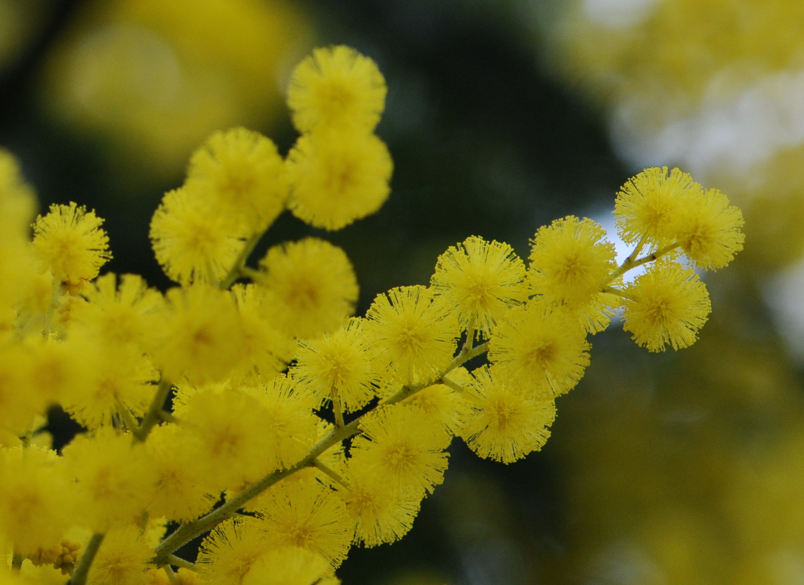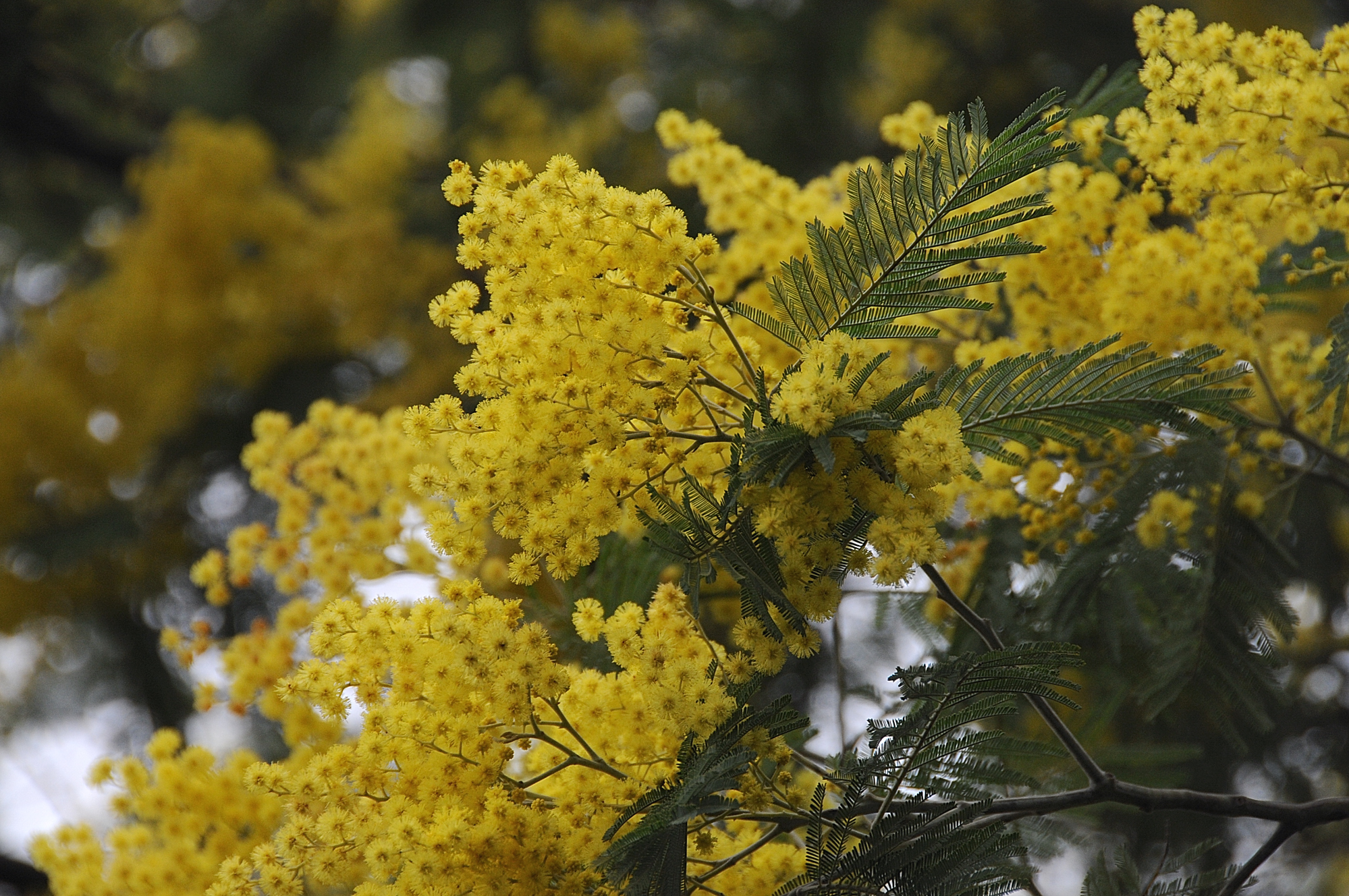 On ne saurait ignorer le Mimosa dont la flamboyante floraison égaie la « grisaille » de février. Certes, ce n’est pas une plante autochtone : elle est originaire d’Australie. Mais elle a tellement enthousiasmé le public, lors de son introduction en Europe au 18è siècle, que les fleuristes l’ont largement cultivée et diffusée. Les fleurs très petites sont regroupées en inflorescences sphériques très odorantes, jaune vif. Les feuilles composées sont très élégantes avec leurs folioles très fines. Une dernière précision d’ordre botanique : le Mimosa dont il est question est en réalité un Acacia (Acacia dealbata), le terme Mimosa devant, en toute rigueur, être réservé à la Sensitive, Mimosa pudica, une plante dont les folioles se ferment au moindre effleurement… (vidéos sur internet)
