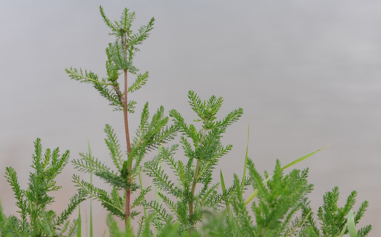 Jeunes pousses d’Achillée millefeuille sur fond de Loire
