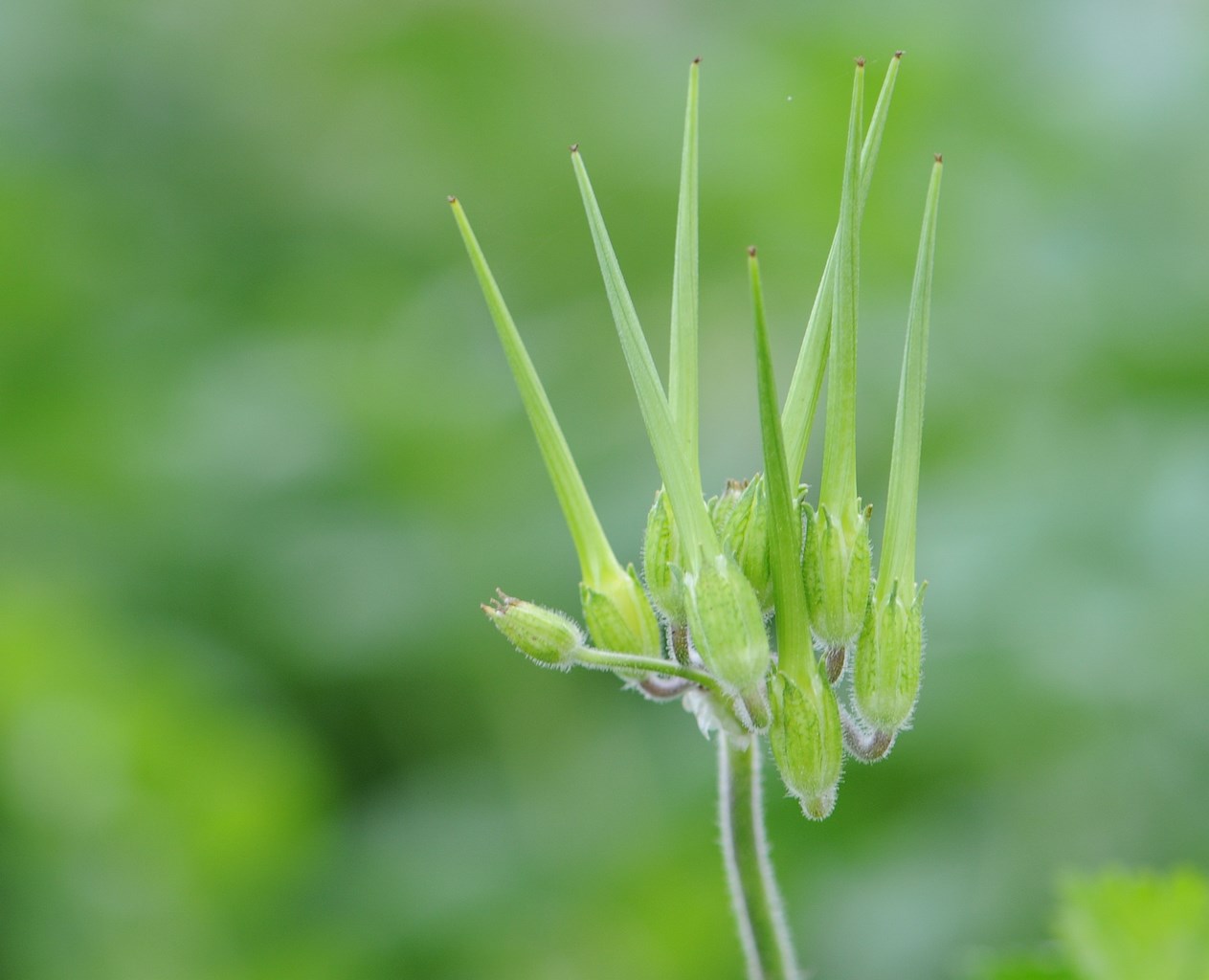 Enfin, dernier indice : le nom vernaculaire de l’Erodium est Bec-de-grue, et en observant son fruit, on comprend pourquoi !