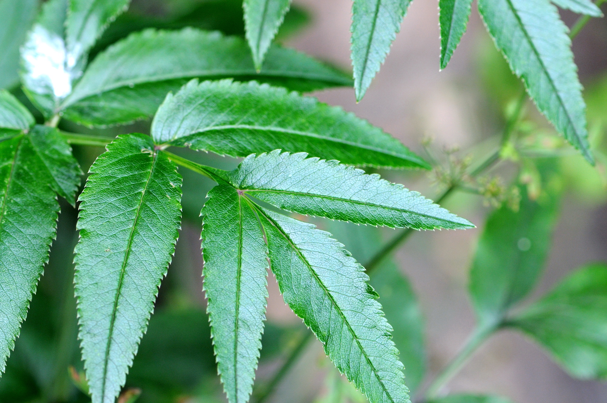 Comme chez toutes les Ombellifères, les fleurs sont disposées…en ombelles, c’est-à-dire que les pédoncules floraux semblent partir d’un même point. Les feuilles sont divisées en folioles dont le bord est garni de petites pointes blanches : ce détail est un critère d’identification de cette espèce, qui fleurit donc en juin.