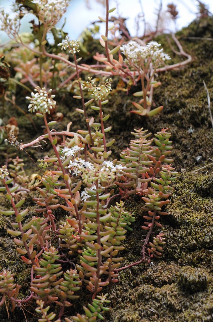 L’Orpin blanc affectionne particulièrement les vieux murs, ensoleillés et moussus.